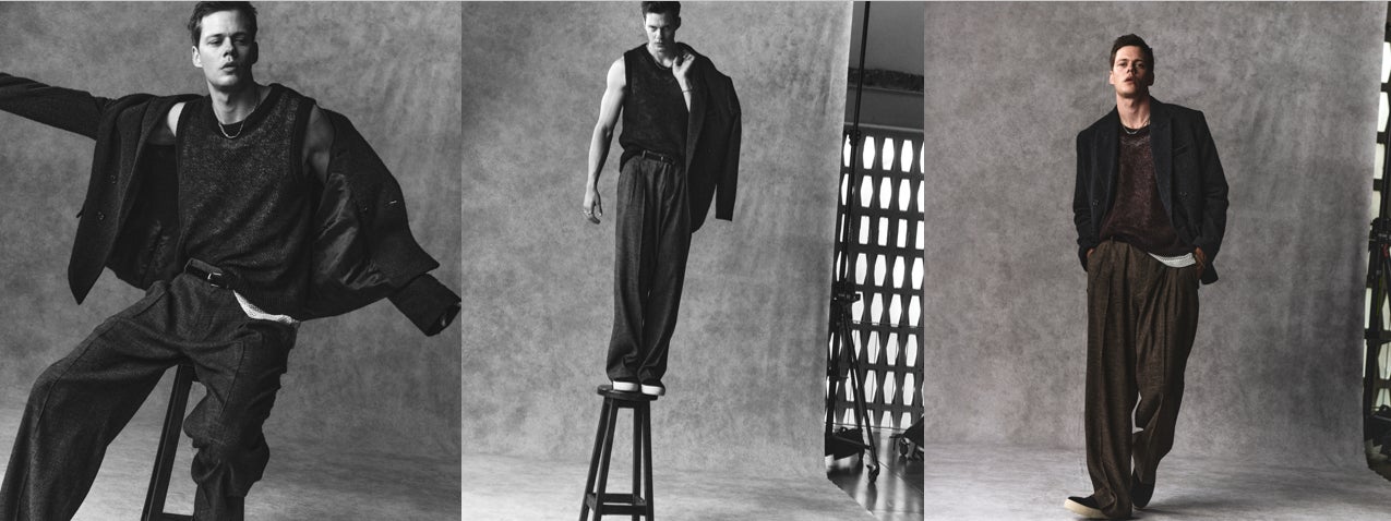 今回初めてのローンチとなるH&M Atelier A/W24コレクションは、キャンペーンモデルであるスウェーデン人俳優のビル・スカルスゲールド(Bill Skarsgård)にインスパイアされたエフォートレスで直感的な着こなしを想起させる、意図的に崩したルックが揃っています。タイムレスなアウターウェアとリラックスした仕立てが特徴のカジュアルで自信に満ちたレイヤリングを通じて、個性を表現するワードローブを提案します。贅沢で魅力的な素材とテクスチャーが、予期せぬ深みをもたらします。主役となるアウターウェアは、リラックスしたテーラードパンツとスリッポン・スニーカーを組み合わせることで、さらにカジュアルな印象を演出します。