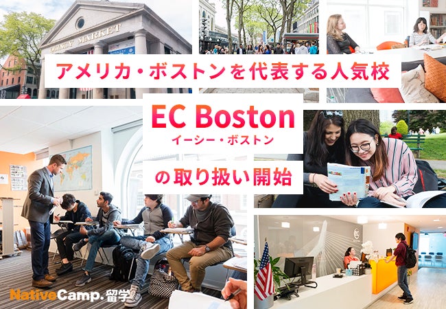 ネイティブスピーカーと回数無制限のオンライン英会話サービス「ネイティブキャンプ英会話」を展開する株式会社ネイティブキャンプ(東京都渋谷区 代表取締役: 谷川国洋)は海外留学エージェントサービス「ネイティブキャンプ留学」において、アメリカ・ボストンを代表する人気校「EC Boston」の取り扱いを開始したことをお知らせいたします。