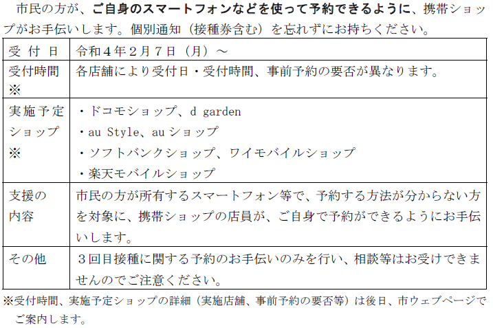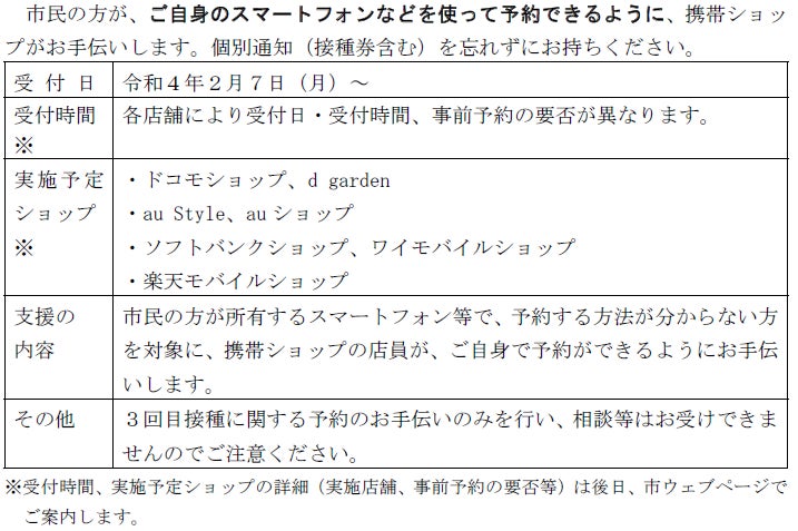 (3)市内の携帯ショップでインターネット予約のお手伝い