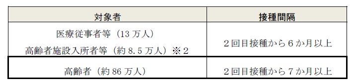 国の前倒し接種方針 (※1)を踏まえ、令和4年2月以降に2回目接種完了から8か月以上経過する 65 歳以上の高齢者について、接種間隔を前倒します。