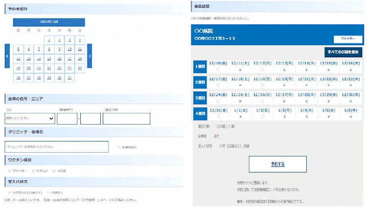 医療機関約 1,200 か所と集団接種会場の予約の空き情報がいつでも検索可能 です。(2月上旬公開予定)