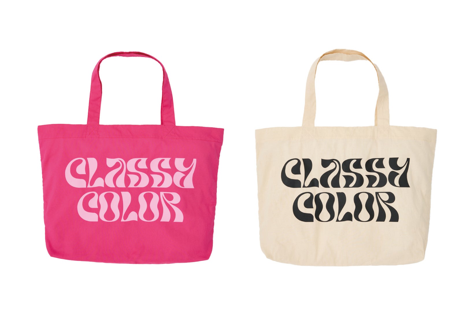 オリジナルロゴをプリントしたトートバッグは、一泊旅行程度ならまかなえる大容量&マチつきが嬉しい。