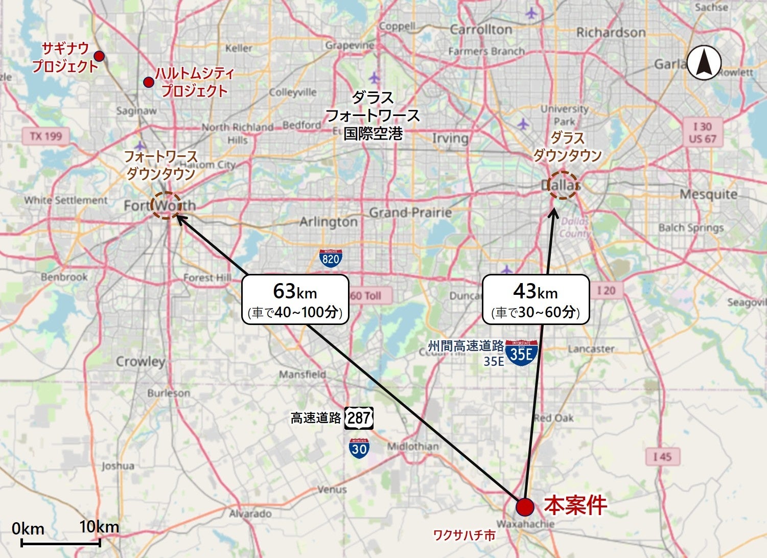 ワクサハチ市は、テキサス州の北部に位置する人口約4.8万人の都市です。近年人口増加の著しいダラス・フォートワース複合都市圏(人口約834万人)に位置しており、ダラス市、フォートワース市をはじめとする周辺都市のベッドタウンとしての賃貸需要が見込まれているエリアです。