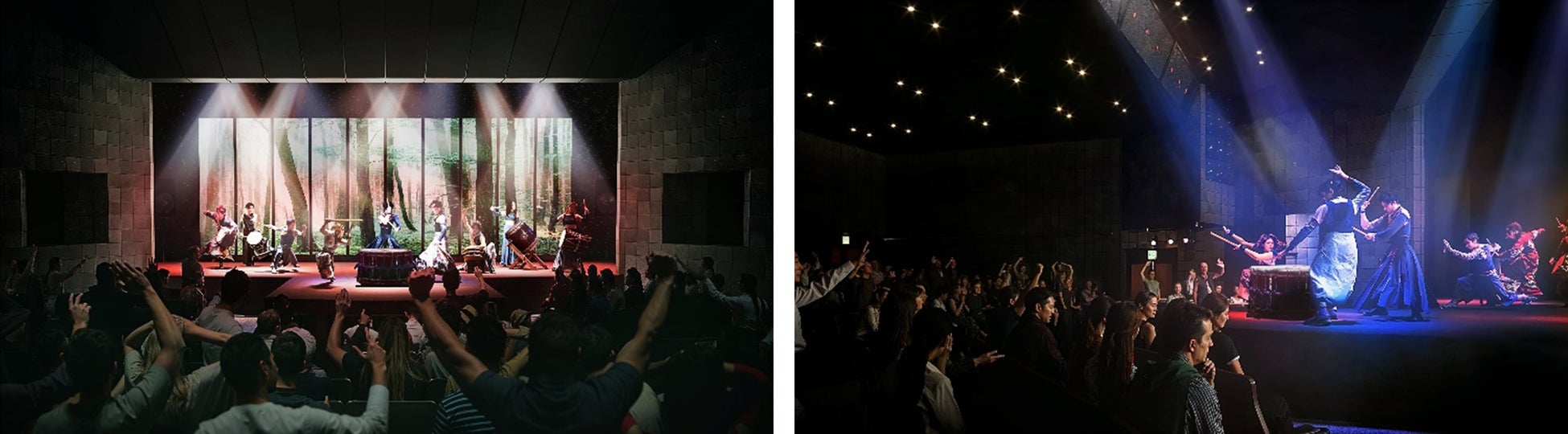 2.劇場の全貌公開。DRUM TAOの魅力に迫る専用劇場ならではの世界観を創り出し、公演前後も楽しめる空間をご提供いたします。 |