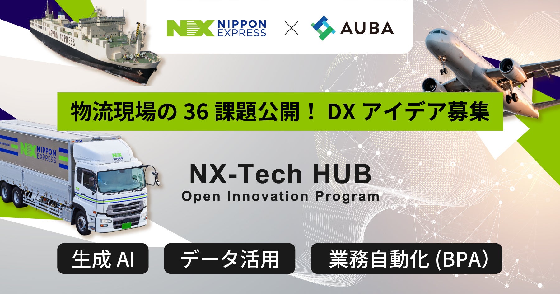 2025年9月16日より10月24日まで、NXグループ各社から集約された約100件の現場課題を起点に、AUBAを通じて国内外のスタートアップから解決策を募集。