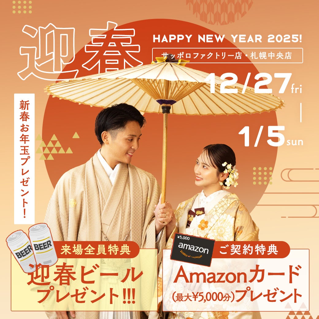 札幌市中央区にあるスタジオパレットサッポロファクトリー店/札幌中央店にて、年末年始限定のお年玉企画!迎春ビール&amazonギフトのプレゼントで、新年をお祝いしましょう。