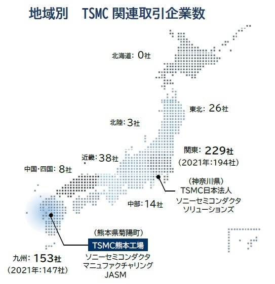 「TSMC」関連取引、社数2年で1割増 地元「九州」は微増 取引企業は関東地方に集中