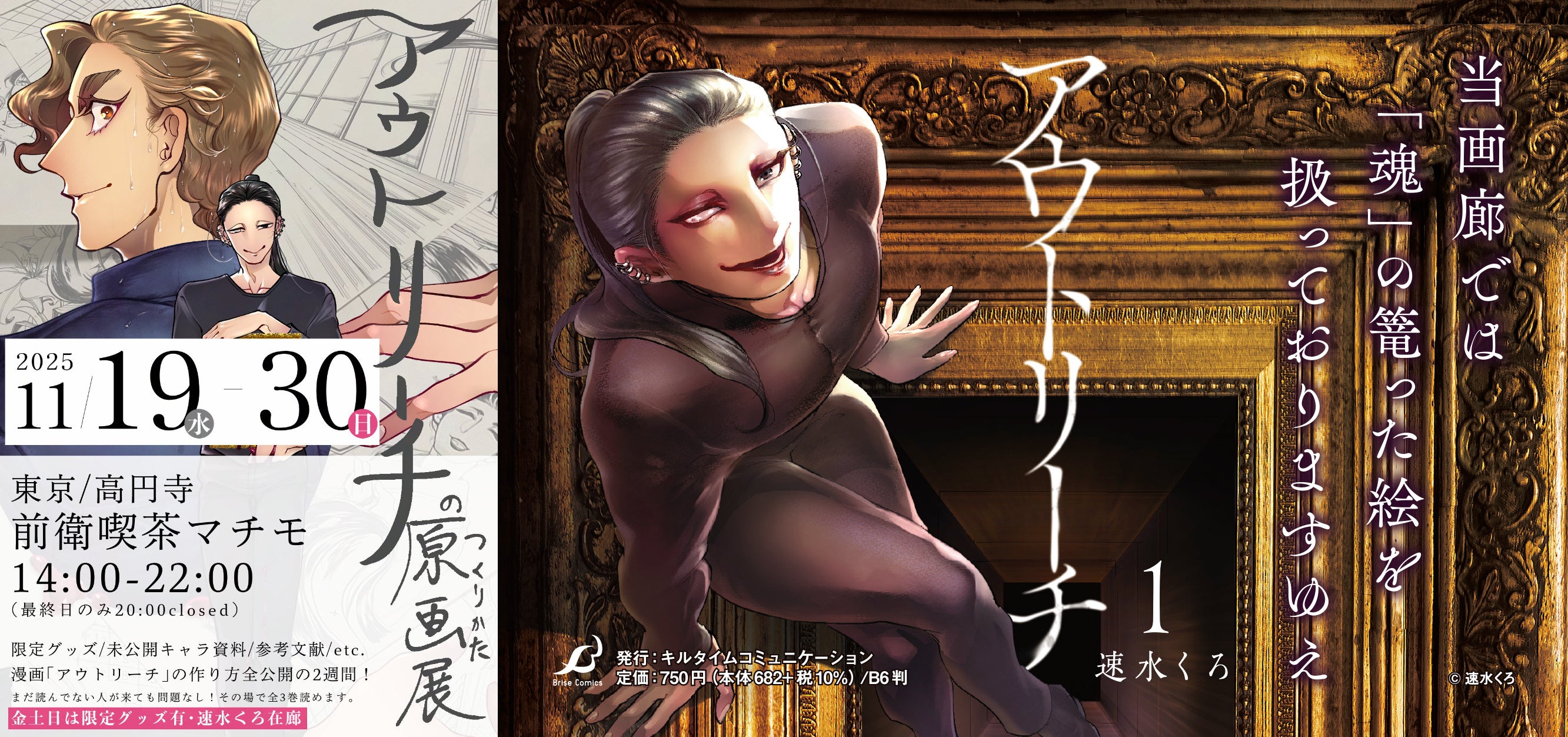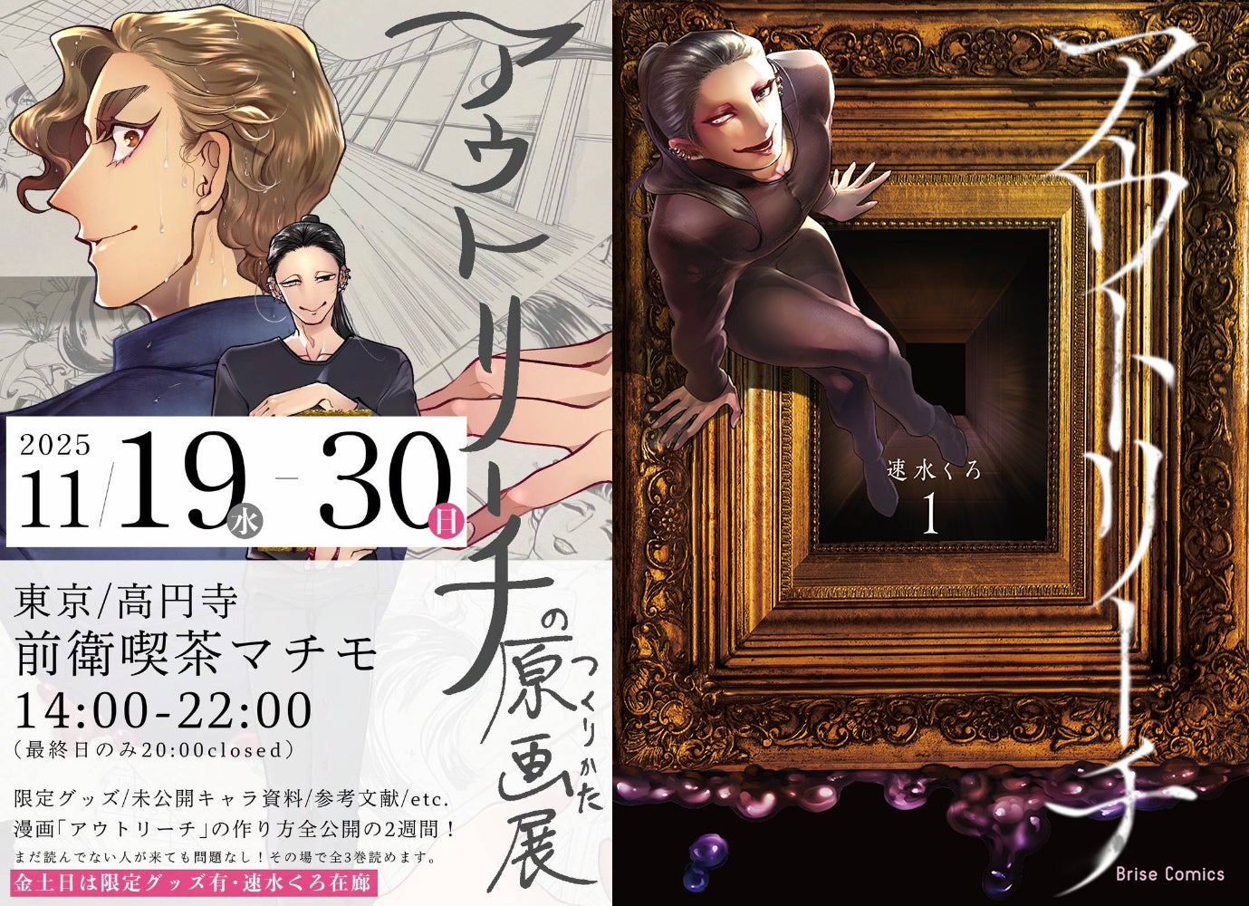 【原画展のおしらせ】呪われた絵画を扱うオーナーとそれに魅入られた美大生を綴る物語を描いた人気コミック『アウトリーチ』の全てがわかる原画展「アウトリーチのつくりかた原画展」が開催
