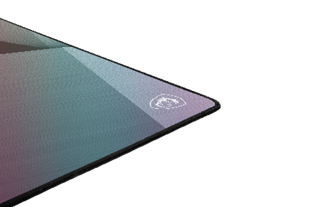 本製品は、マウスパッドの表面にガラスビーズを混ぜ込んだ特殊加工を施すことで、従来のMSI製マウスパッドよりも滑らかさが向上しています。また光を反射しきらめくようなグレア加工も施されています。サイズの異なる2製品をラインナップしており、机のサイズやお好みに合わせてお選びいただけます。