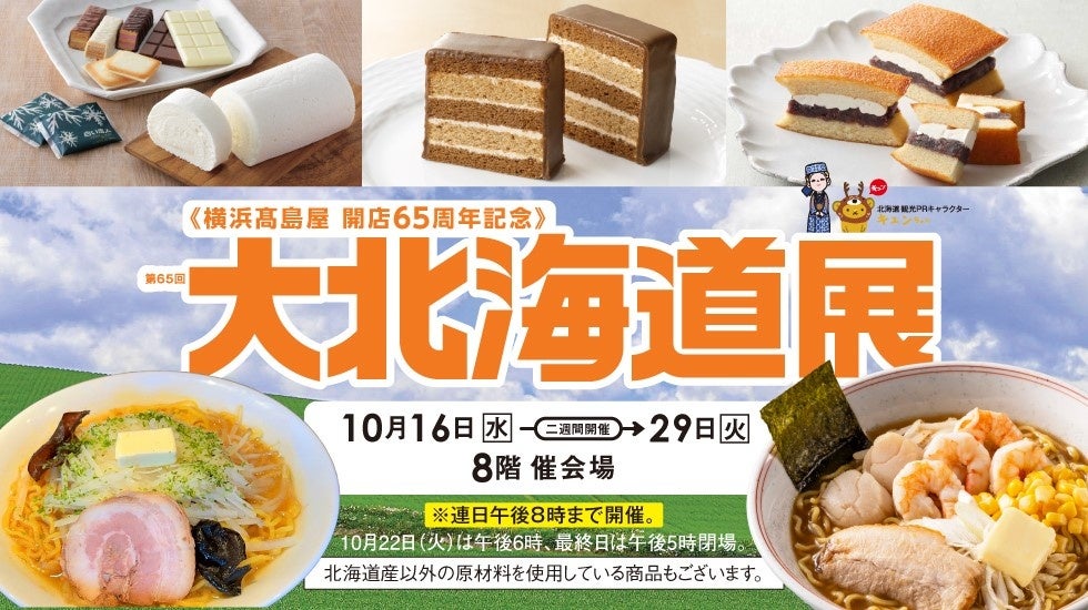 横浜高島屋では、毎年人気の催し<第65回 大北海道展>を10月16日(水)から2週間にわたり開催いたします。
