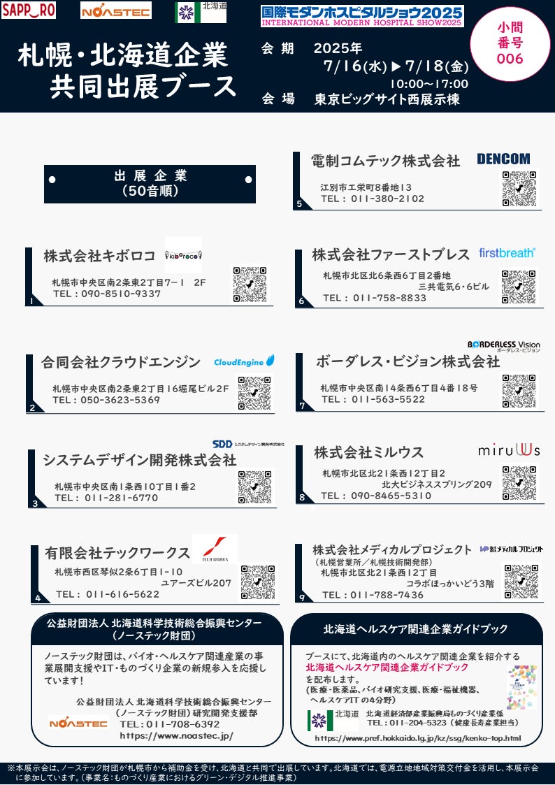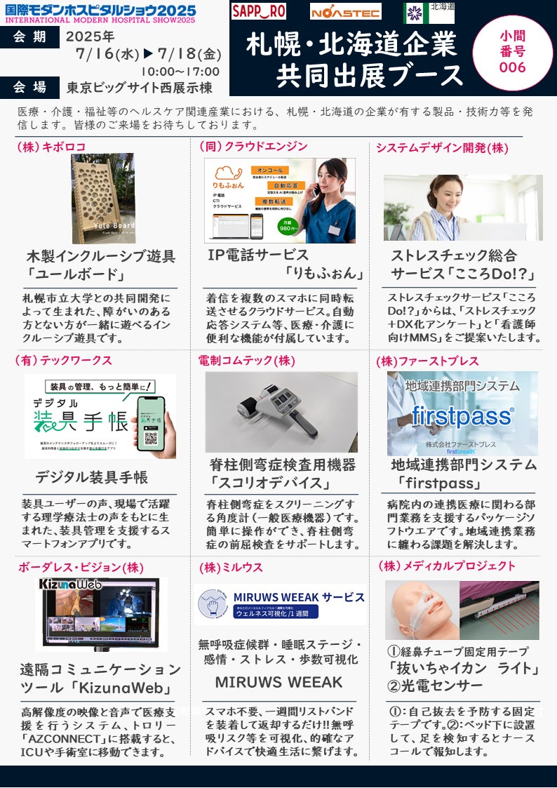 「国際モダンホスピタルショウ2025」へ札幌・北海道企業共同出展ブースを出展します!