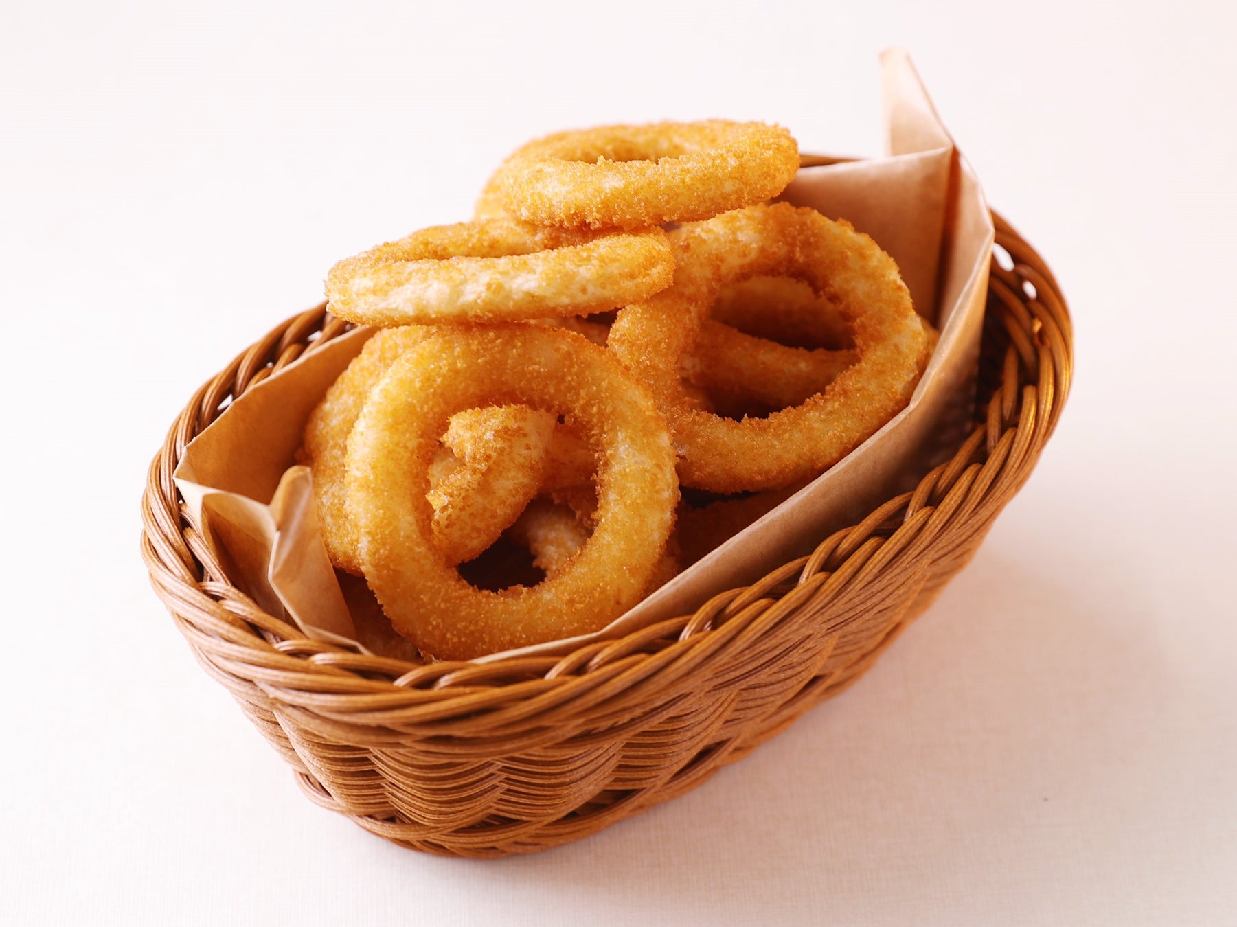 タマネギの甘みと、軽く味付けした衣の塩気がバランスの良いオニオンリング。