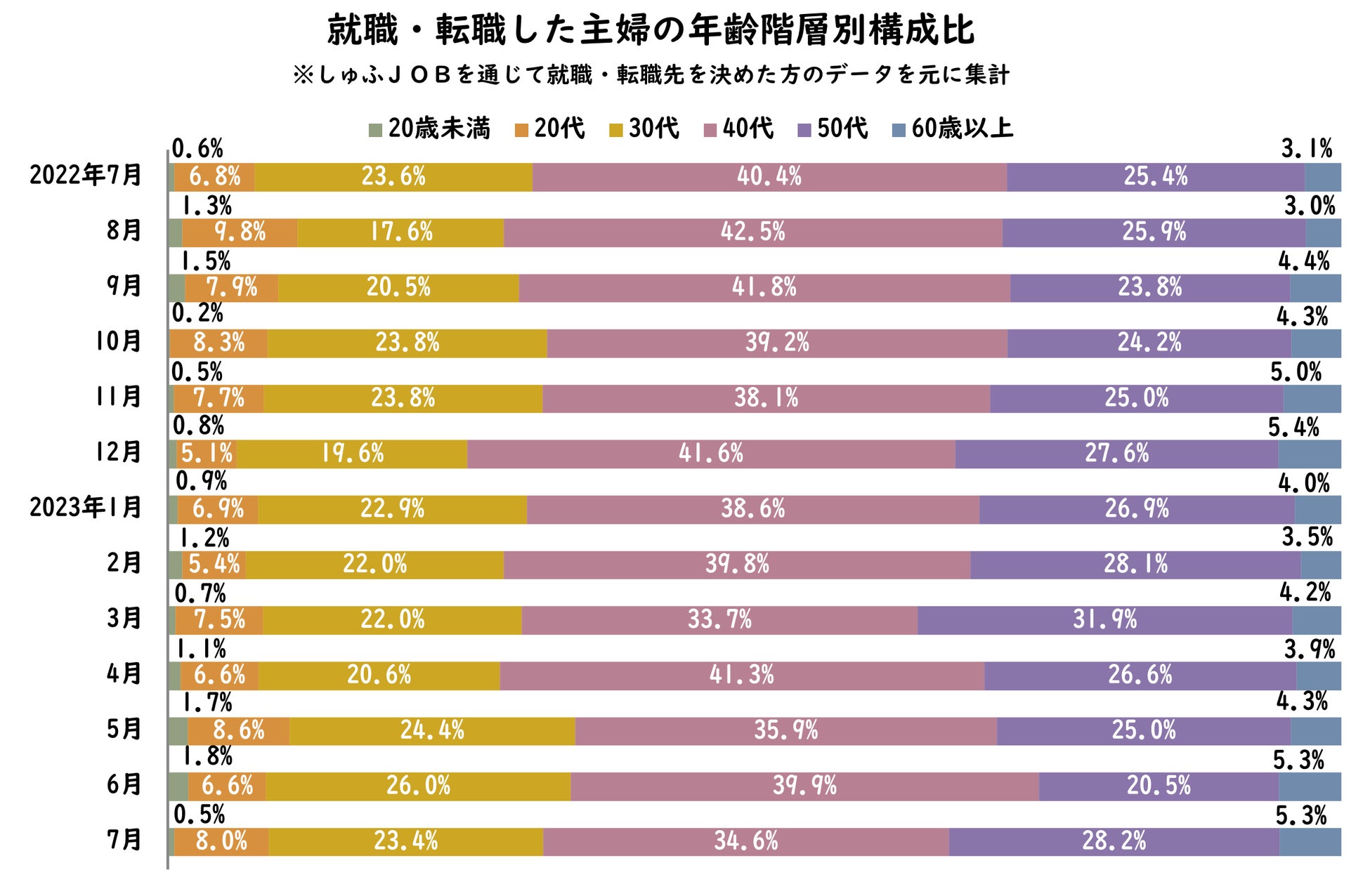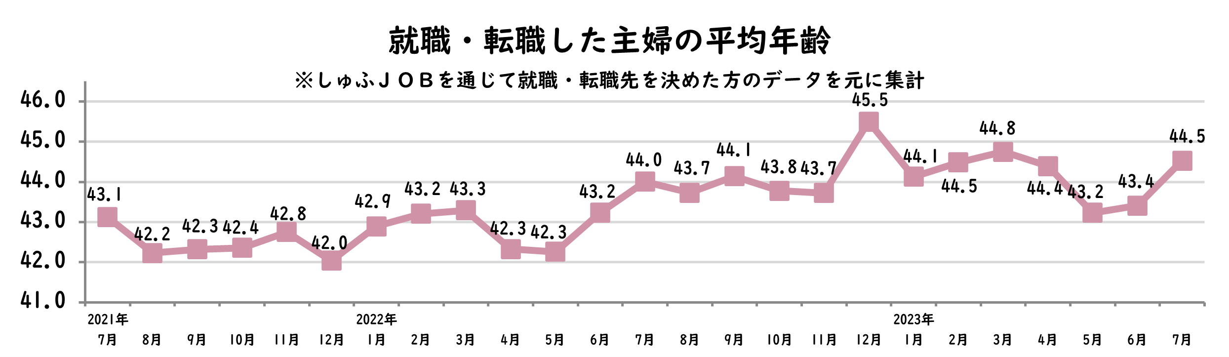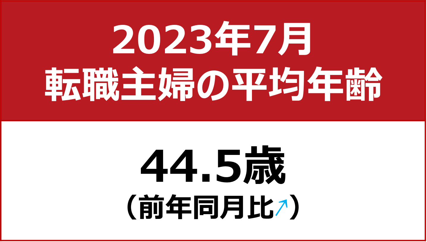 【転職主婦の平均年齢調査 2023年7月】44.5歳(前年同月比+0.5歳)