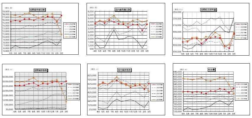 同期比95%、19年度比99%)、発着回数は46,553回(前年同期比93%、19年度比86%)と、いず