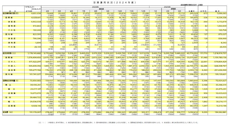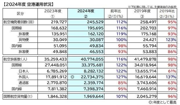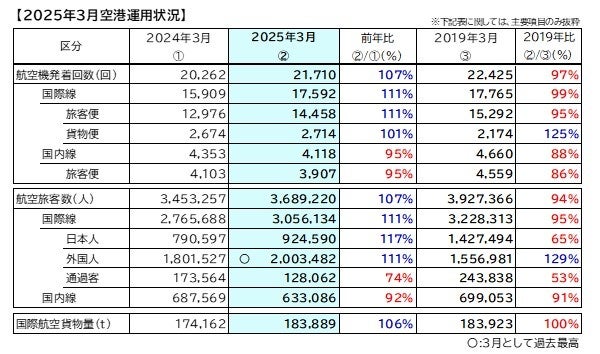 2025年3月 空港運用状況 国際線外国人旅客数は200万人超、3月として過去最多