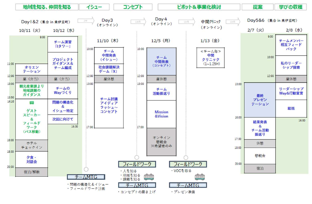 ・スケジュール:ワークショップDay1&2、5&6およびPJT活動のフィールドワークは東伊豆町内で実