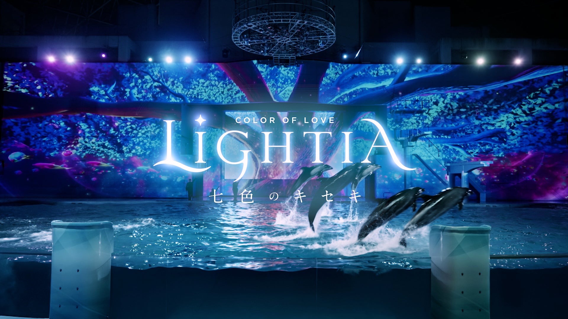 「LIGHTIA~七色のキセキ~」は、過去・現在・未来を旅し、生命の歴史・誕生・つながりを描きながら、命の調和と未来の希望につなぐ“奇跡の花”を咲かせるため、イルカたちが時空を超える壮大な物語を表現したパフォーマンスです。
