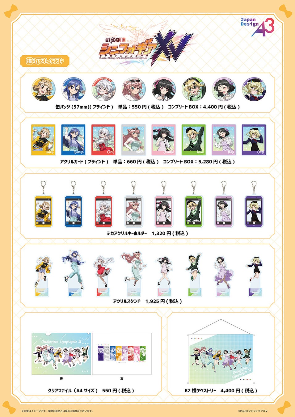 “おでかけ”テーマの描き下ろしイラストを使用し、充実したラインナップで登場したTVアニメ『戦姫絶唱シンフォギアXV』の新作グッズ。