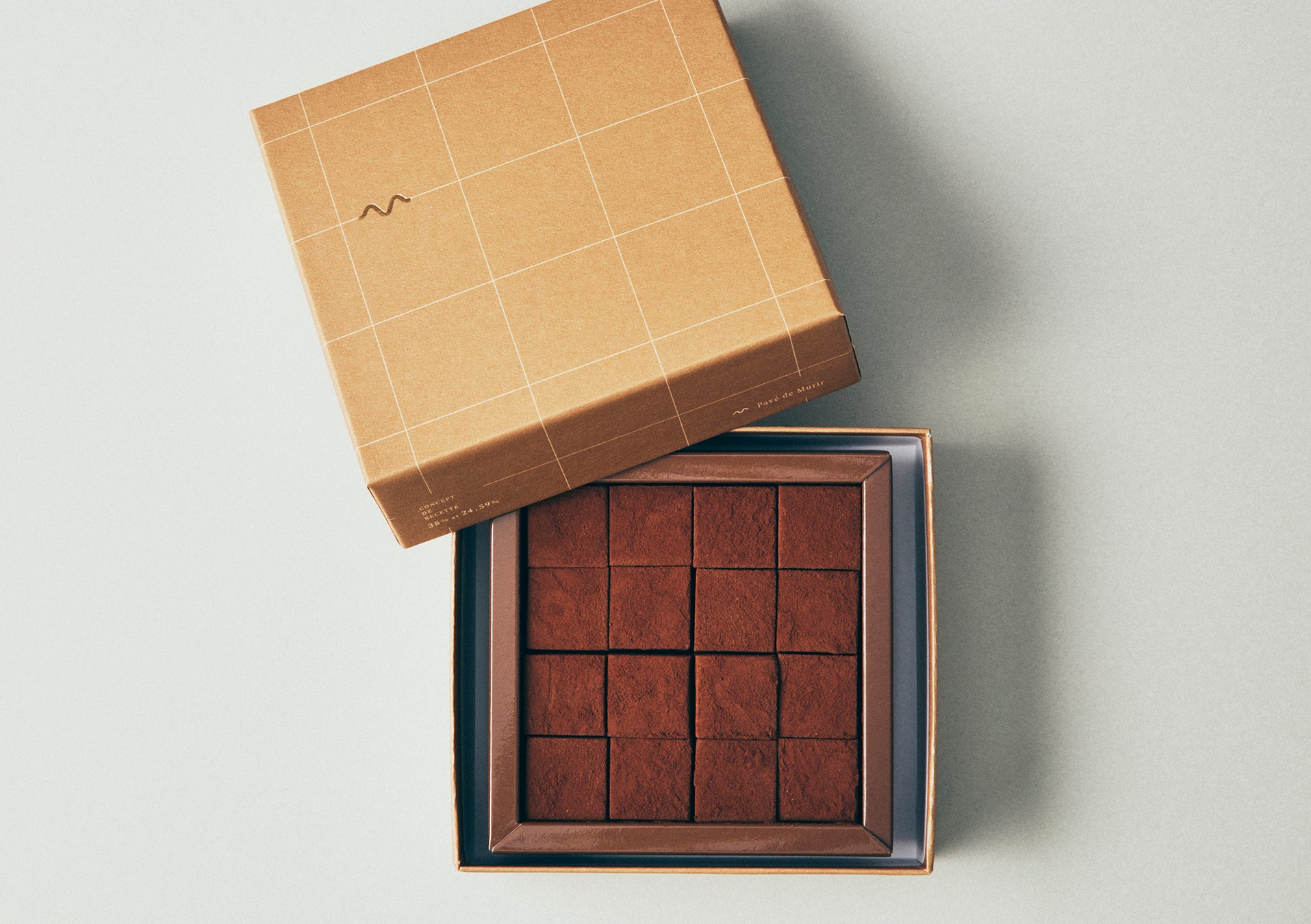 Murir の奥深い上品な甘さが、“ゆっくりと包みこんでいく”生チョコレート。乳脂肪分の低い生クリームを使用することで織りなされる、驚くほど上質でなめらかなくちどけと、やさしく解き放たれる豊かな香り。こだわり抜いたカカオのコクと、メドゥミルクのやさしい味わいを、キューブ状に閉じ込めて。