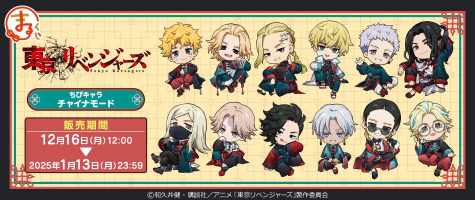 TVアニメ『東京リベンジャーズ』から、『まるくじ』ちびキャラシリーズ第4弾となる今回は、チャイナ服に身を包んだ武道たちの、ちびキャライラストを使用した『まるくじ』でしか手に入らない商品をご用意いたしました!