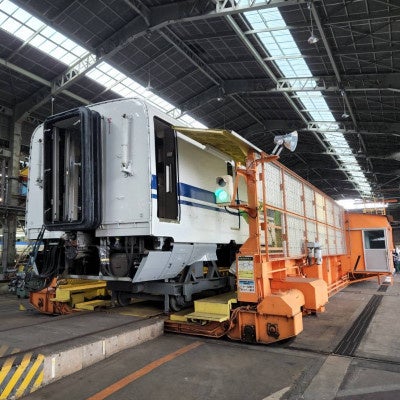 工場内で新幹線の検査を行うために、1両ずつ新幹線を切り離して移動させる装置「トラバーサ」による新幹線車両の移動の様子や、パンタグラフなどの車両上部の見学のほか、現役運転士が案内する運転台見学など、博多総合車両所で開催される鉄道ファン必見のツアーです。
