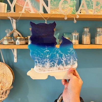 沖縄県北谷町アラハビーチの目の前にある小さなカフェで、お茶を飲みながらレジンアートを楽しむことができます。シーサーやパイナップルなど、沖縄らしい型をベースに作るレジンアートは、旅行から帰った後も思い出深いお土産になります。