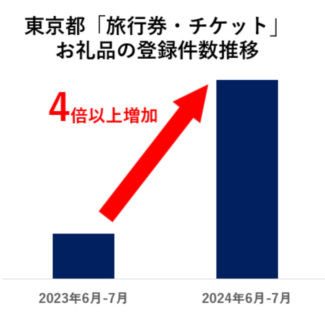 「さとふる」に掲載されている、東京都の「旅行券・チケット」カテゴリのお礼品の登録件数が増加しています。