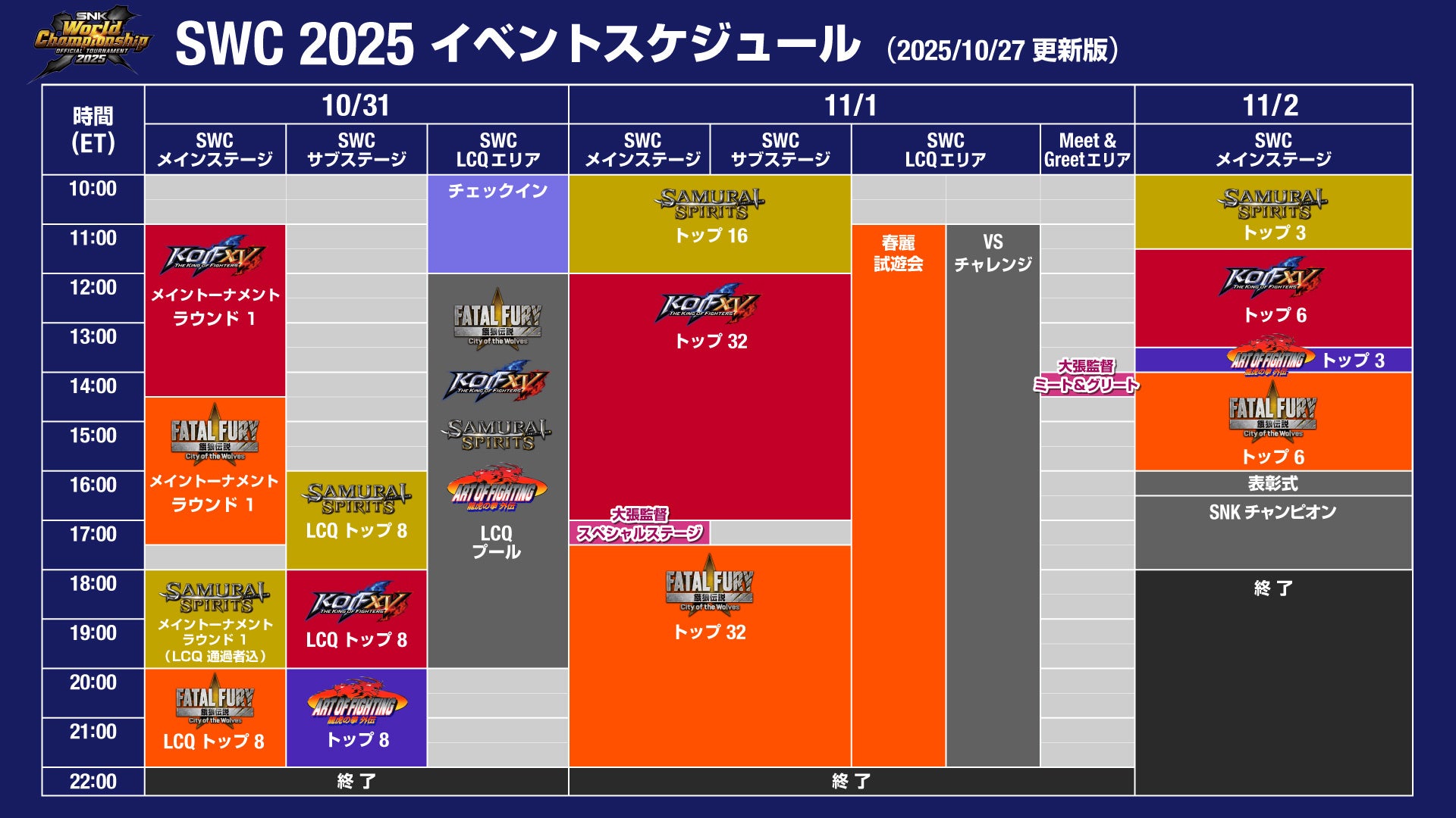 株式会社SNK (本社:大阪府大阪市)は、SNK格闘ゲームの世界一を決定する「SNK World Championship 2025 (SWC 2025)」の公式配信に関する情報をお知らせいたします。