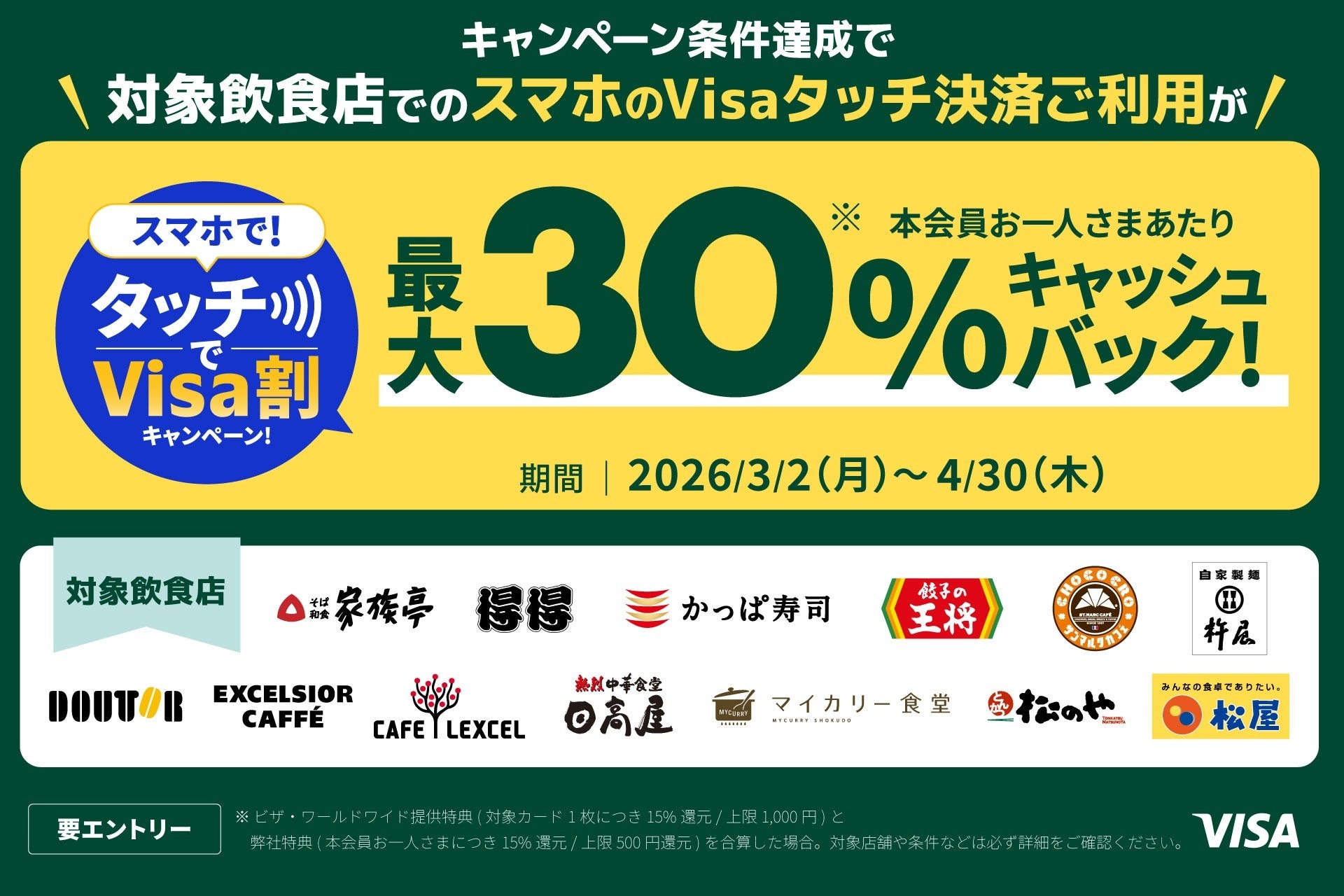 三井住友カード株式会社(本社:東京都江東区、代表取締役 社長執行役員 CEO:大西 幸彦、以下:三井住友カード)は、2026年3月2日(月)より、対象カード限定で「スマホで!タッチでVisa割キャンペーン」を開始します。