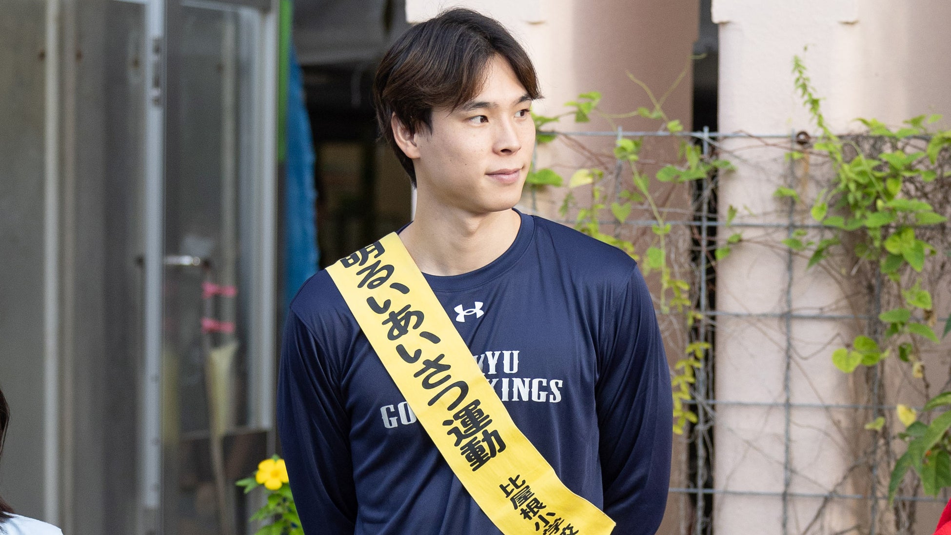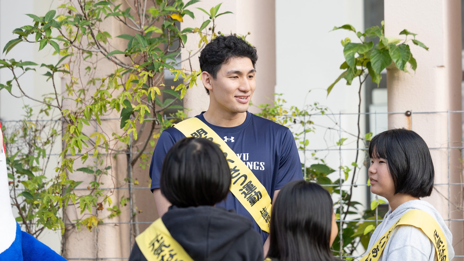 キングスの選手としてあいさつ運動に参加するのは初めてでしたが、子どもたちの反応がとても良く、改めてキングスとゴーディーの人気のすごさを実感しました。早起きをするのは久しぶりでしたが、いつもと違うルーティーンで気持ちよく過ごすことができ、子どもたちにあいさつをしながら僕も元気になりました。