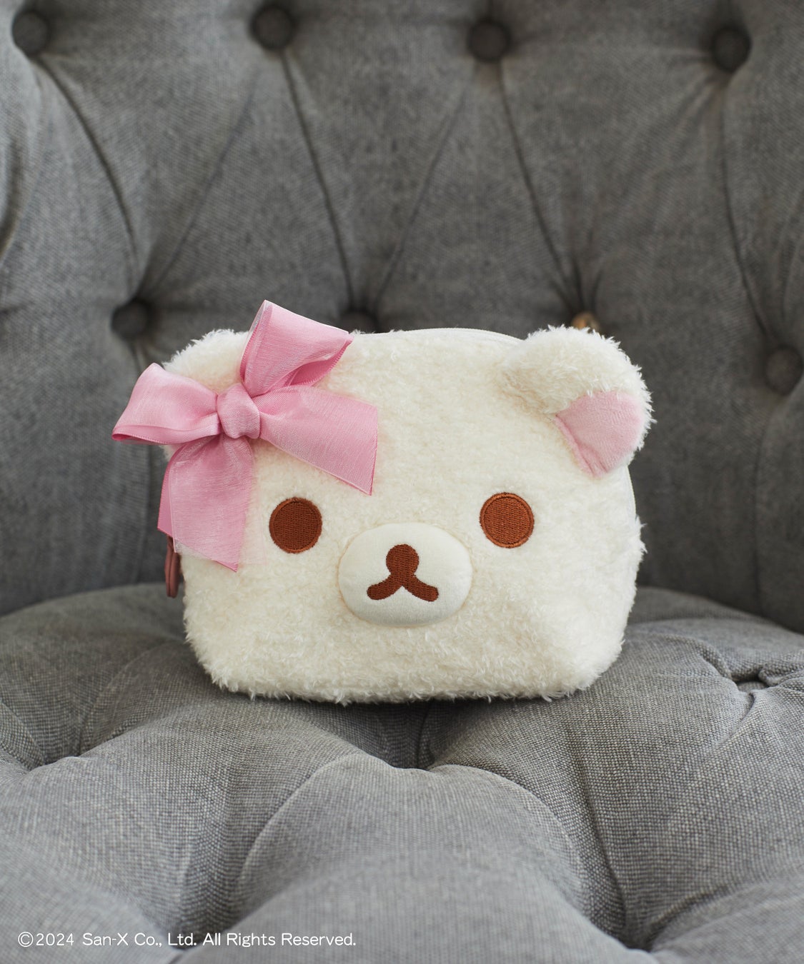 中でも注目アイテムは、ぬいぐるみをイメージしたもこもこのボア素材にコラボアートを刺繍したボアトートバッグと、ボアポーチです。「コリラックマ」の刺繍に重ね付けした立体的なオーガンジーのリボンがポイント。コラボアートをモチーフにした「コリラックマ」と、「くまのぬいぐるみ」のフェイスポーチは、引手部分を「ボタン」と「しっぽ」にするなど細部のディテールにもこだわりました。