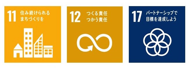 この取り組みでは、SDGs目標⑪「住み続けられるまちづくりを」⑫「つくる責任つかう責任」⑰「パートナーシップで目標を達成しよう」への貢献を目指しています。