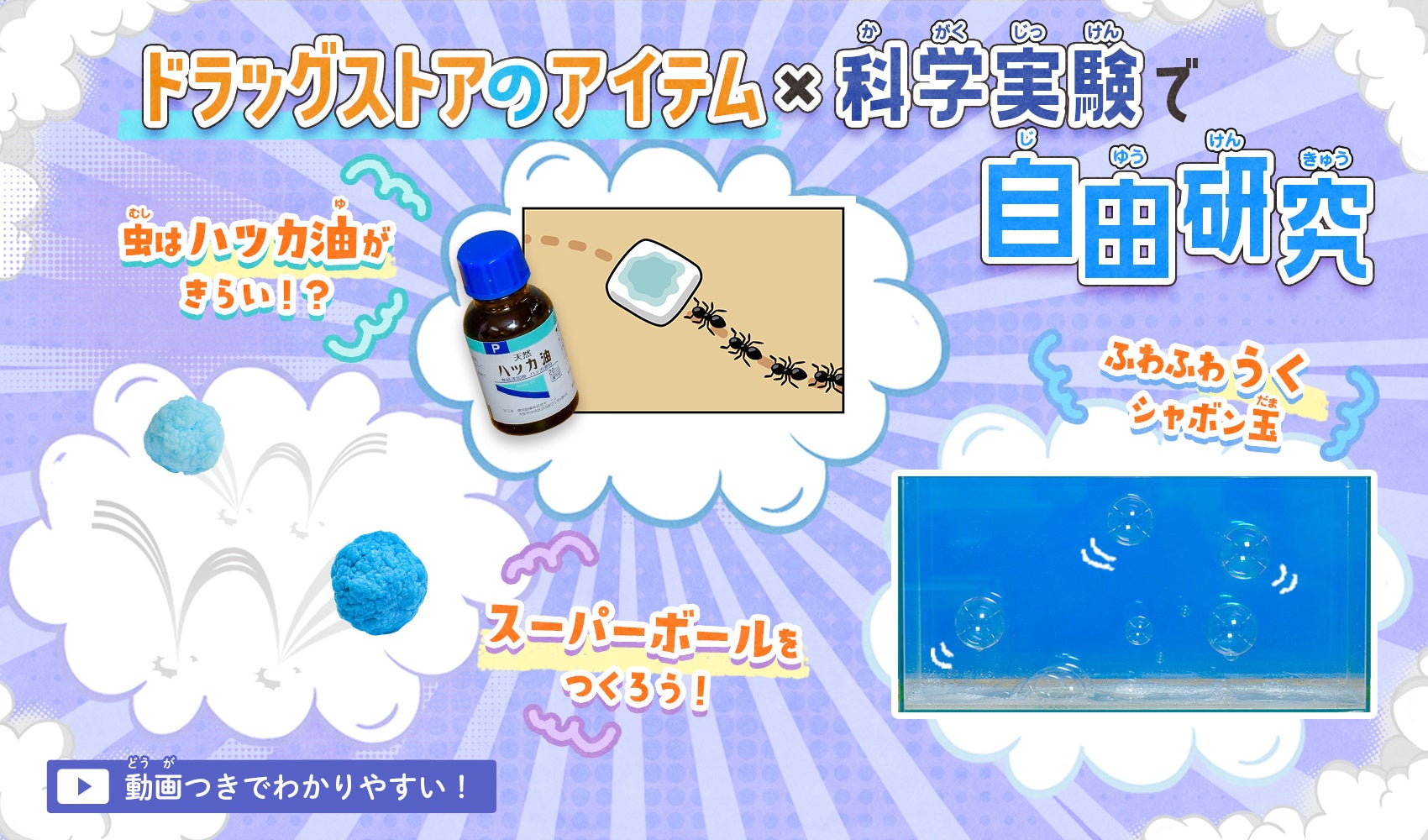 ●「ドラッグストアのアイテム×科学実験で自由研究」(https://kids.gakken.co.jp/jiyuu/drugstore/)