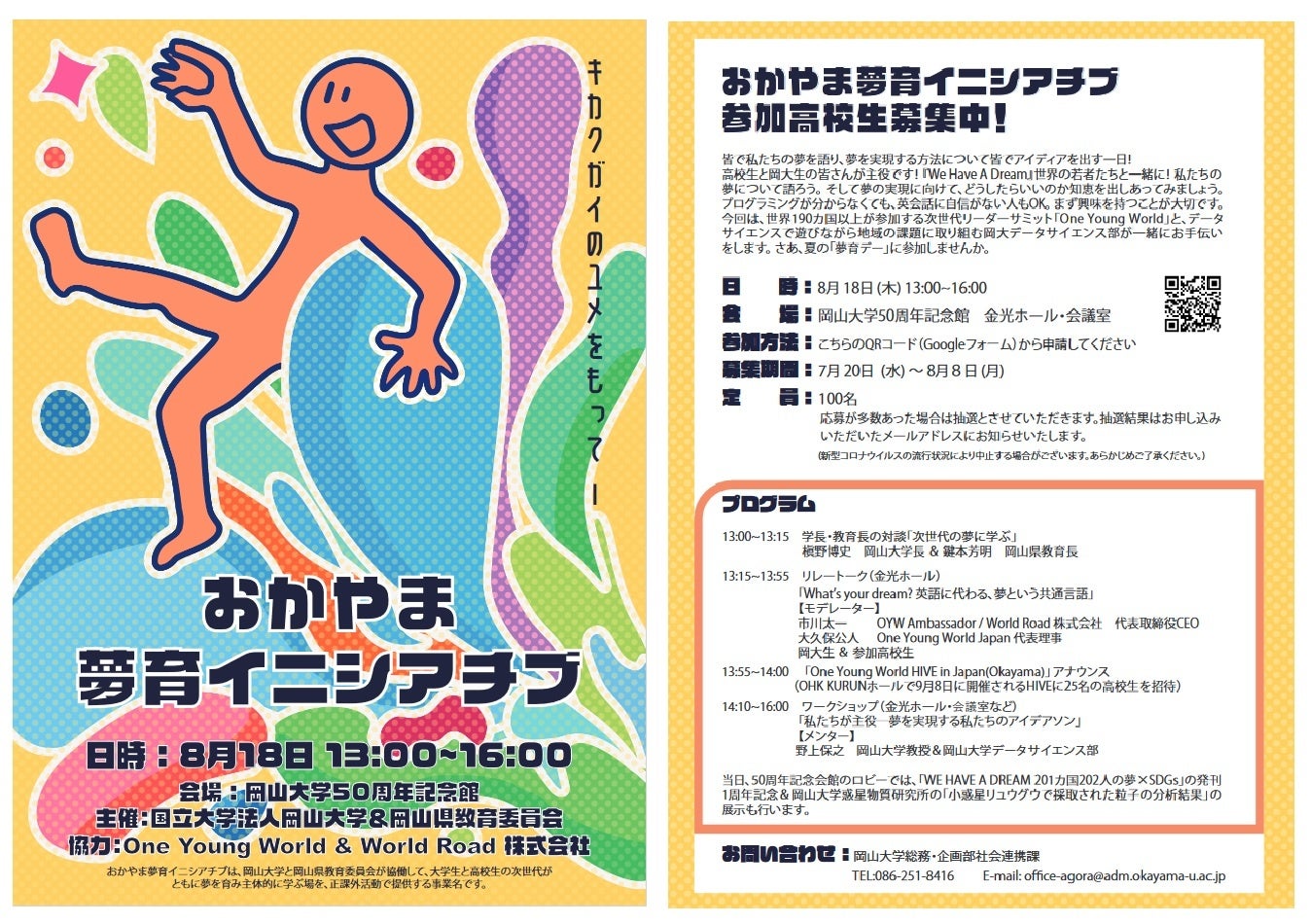 ・【岡山大学】「おかやま夢育イニシアティブ」スタートアップイベント開催〔8/18 木,岡山大学津島キャンパス〕