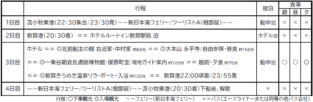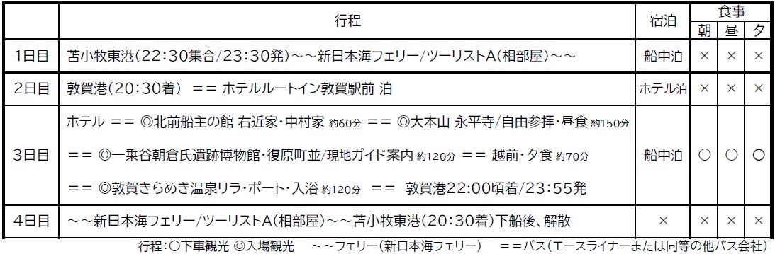 【苫小牧東港発着】新日本海フェリーで行く!福井「越前歴史探訪4日間」団体旅行発売開始!