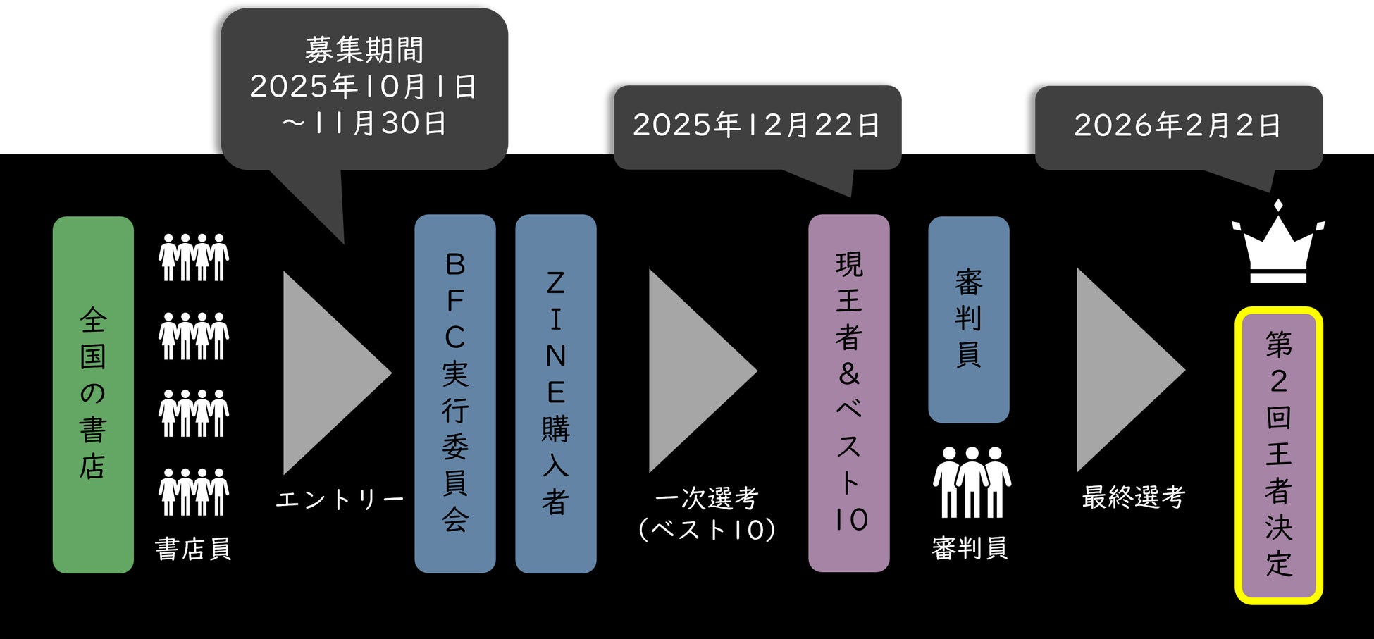 さらに新しい試みとして、BFCオリジナルZINEを制作・販売し、購入者が一次投票に参加できる仕組みを導入。より多くの人々がプロジェクトに関わり、書店と読者を双方向につなぐ試みを進化させます。
