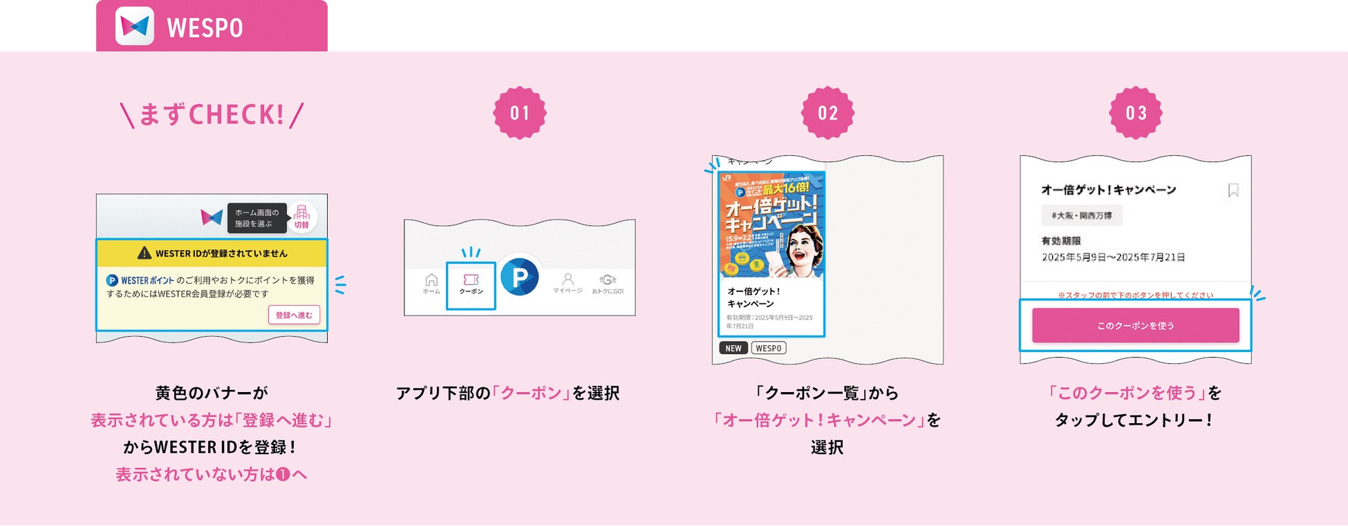 WESTERまたはWESPOアプリから本キャンペーンにエントリーの上、ご参加ください。