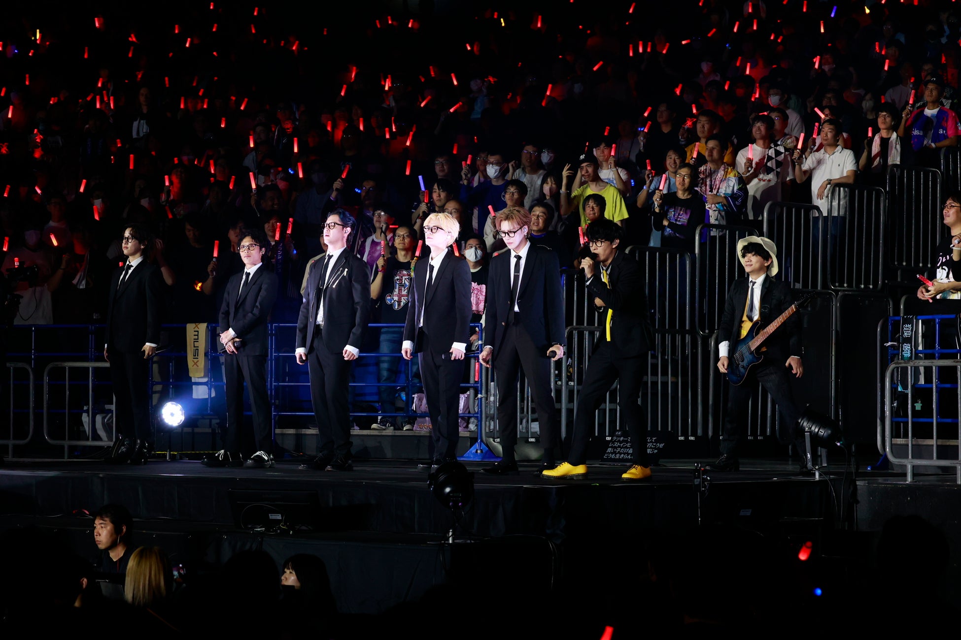 続けて、MADKID×OxTがTVアニメ『チェンソーマン』の「KICK BACK/米津玄師」を披露。“デビルハンター“のようにスーツ姿に身をまとった面々に会場は沸きあがった。