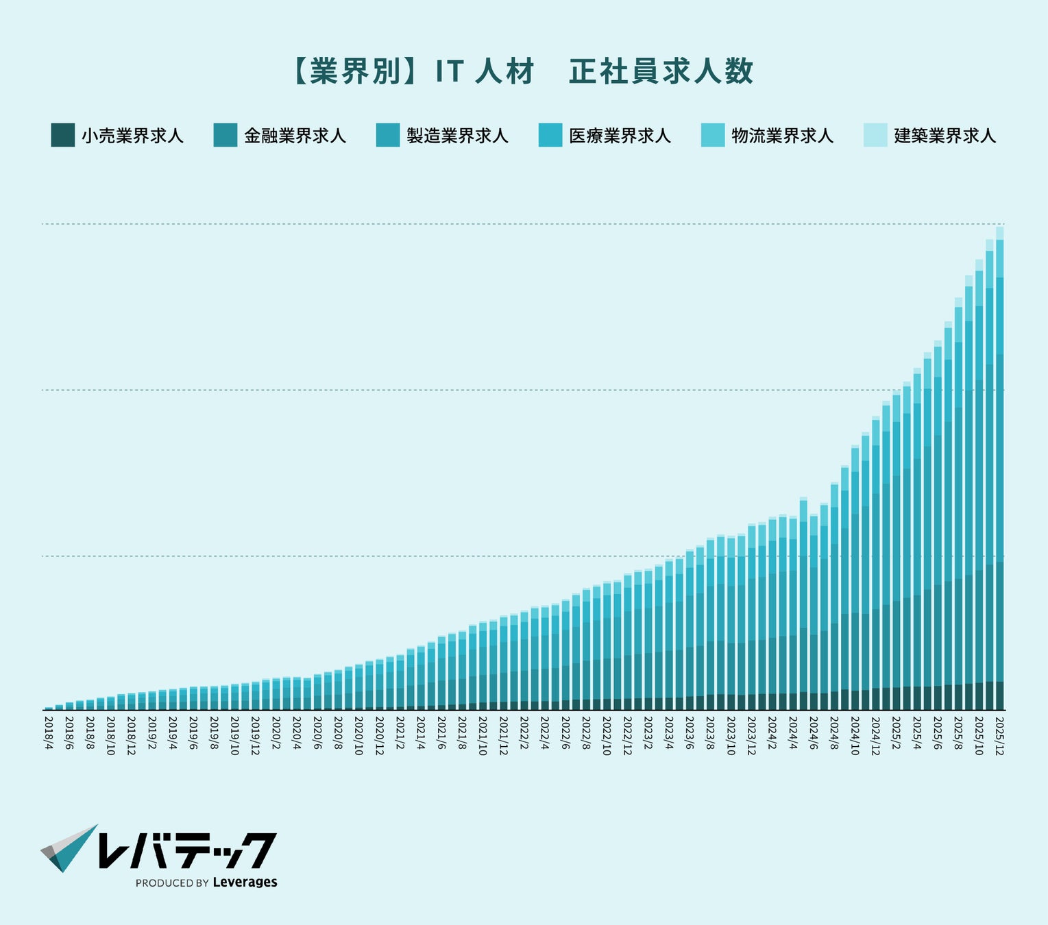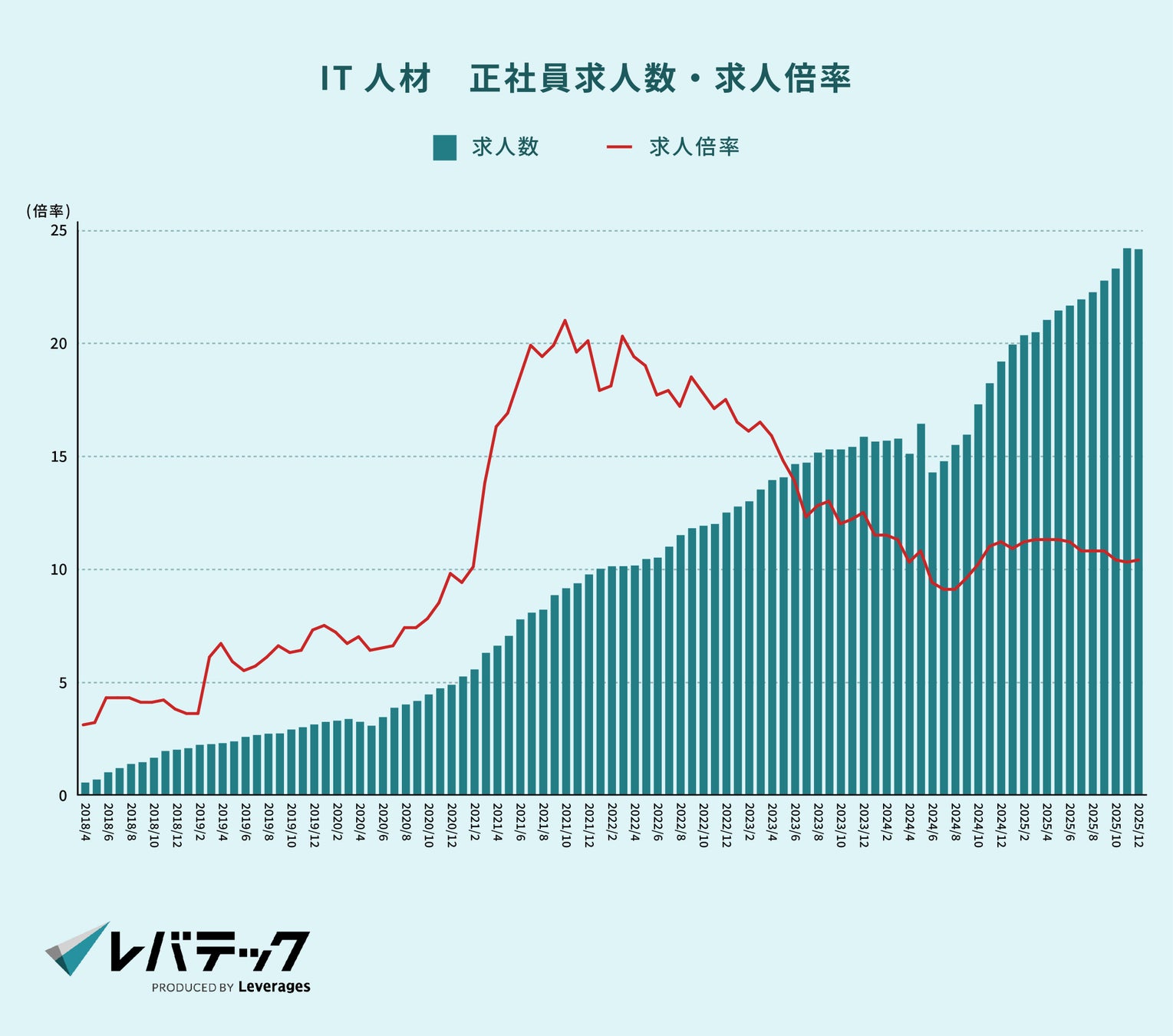 「日本を、IT先進国に。」をビジョンに掲げるレバテック株式会社 ( https://levtech.jp/ ) は、「IT人材の正社員転職市場動向」を発表します。本記事では、レバテックのデータをもとに、IT人材の転職市場における需給の変化を公開します。