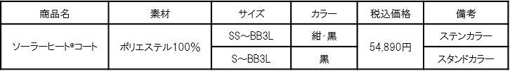 その他、「ソーラーヒート®コート」には、前身頃に発熱綿・後身頃にダウンを使用した「ハイブリッドライナー®」を採用。軽量ながらカサ高があり、より多くの空気を含むことができる「フィルパワー700」のダウンを使用した「ソーラーヒート®マフラー」や、冷たい風を感じにくい防風仕様を採用した「ソーラーヒート®手袋」など、熱が逃げにくくなる表地を採用しているだけでなく、衣服内自体の温度を高く保つ工夫を施すことで、効果的に保温性を維持できるアイテムになっています。