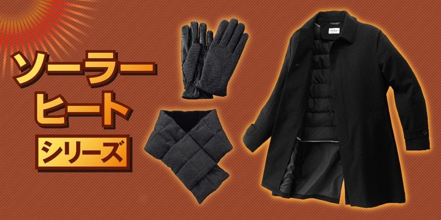 真冬の冷え込みは厳しく、特に朝の通勤時や曇りの日は温かいコートやマフラー・手袋は必須です。AOKIでは太陽光にあたるだけで暖かくなる「ソーラーヒート®コート」を昨年発売し、本年は同生地を使用したマフラーと手袋を新たにラインナップに追加し、コートはバリエーションを増やして展開いたします。