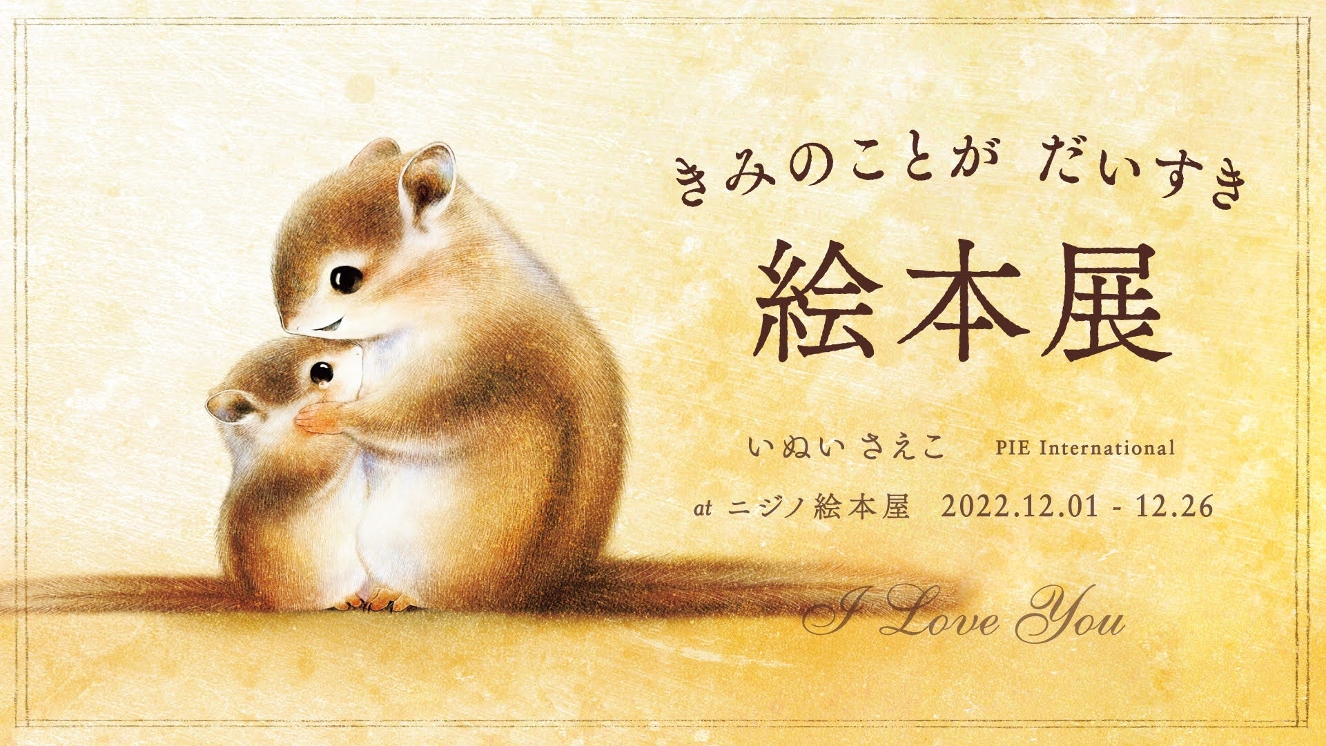 いぬい さえこさんの『きみのことが だいすき』の絵本展をニジノ絵本屋で開催します。