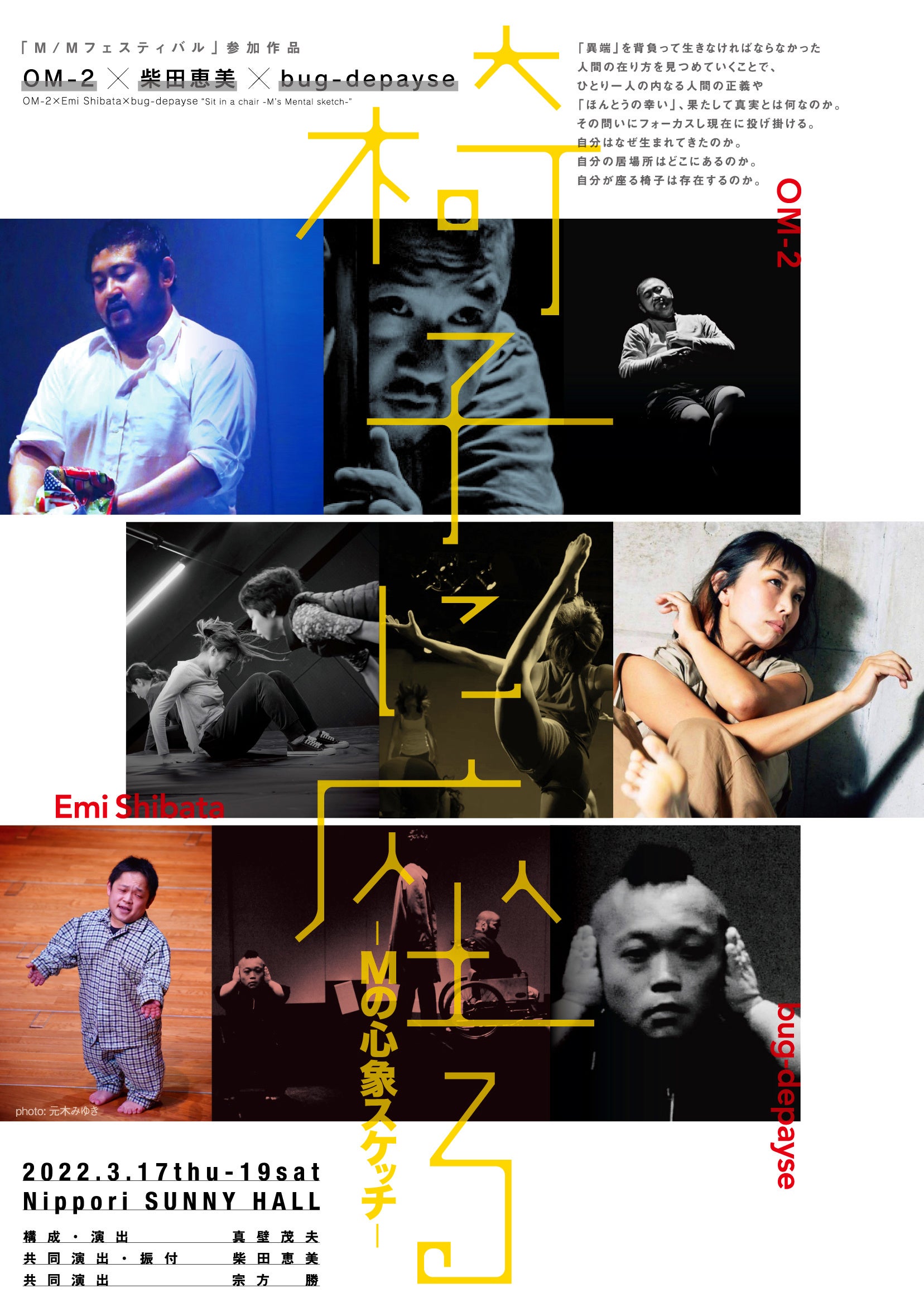 演出にはOM-2の真壁茂夫。共同演出としてダンサー柴田恵美とbug-depayseの主宰・宗方勝。