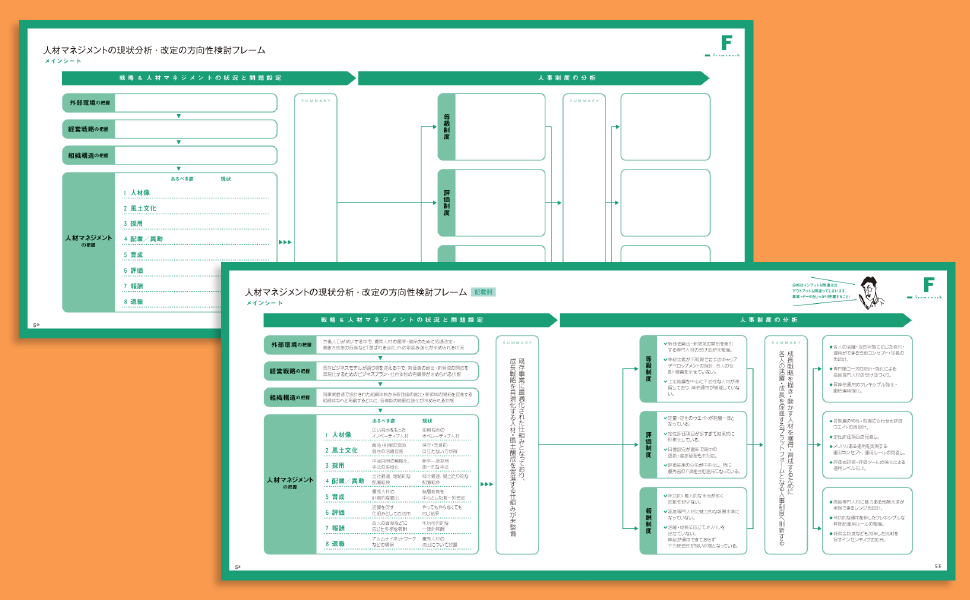 戦略的人事制度改定のために必要な「考え方」の枠組み、また、その枠組みを見える化するためのツールとして、「フレームワーク」を活用します。