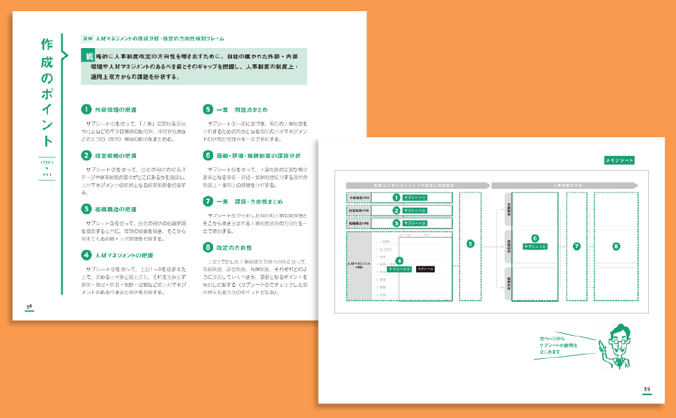また、図解で解説、ポイントの整理をすることで、言葉だけではイメージしにくい人事制度をわかりやすく「見える化」しています。