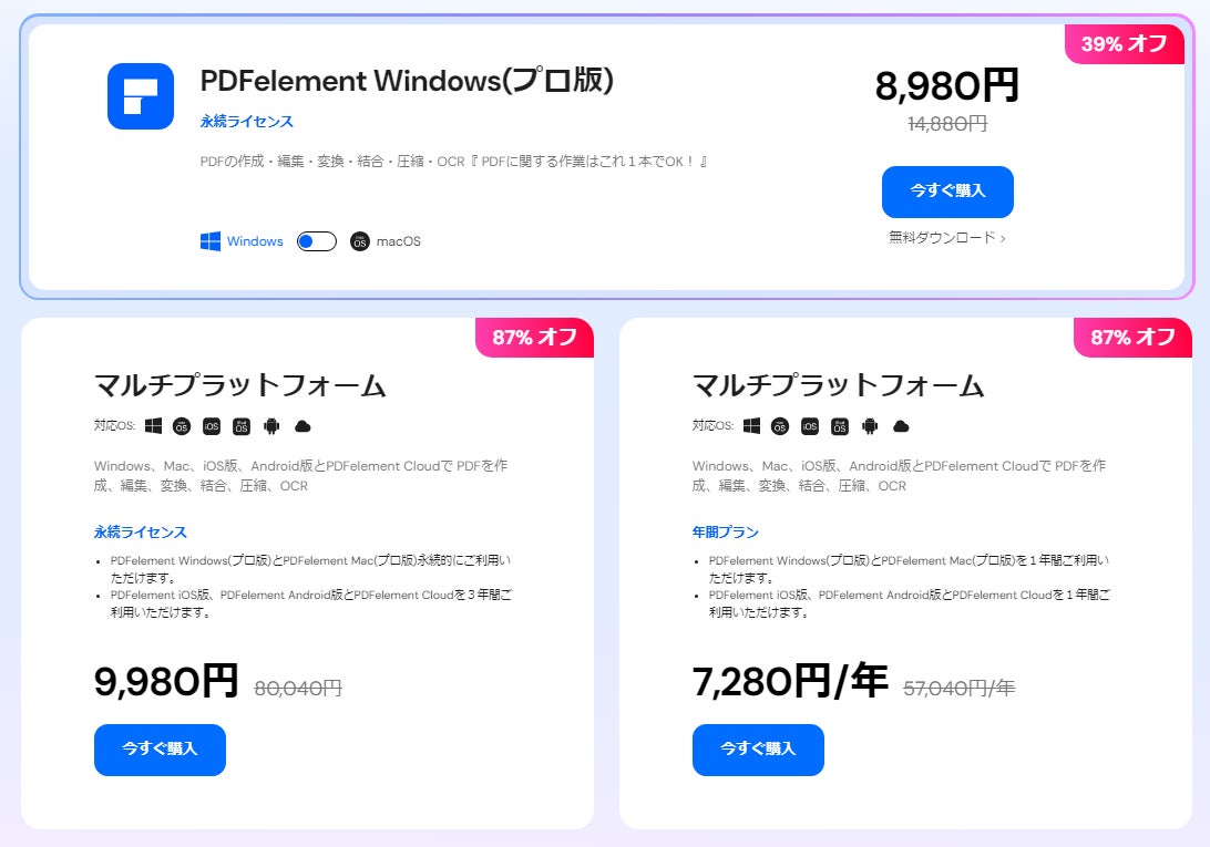 PDFエレメントは、PDFを直接編集出来る非常にコスパの良いオールインワンのPDF編集ソフトです。
