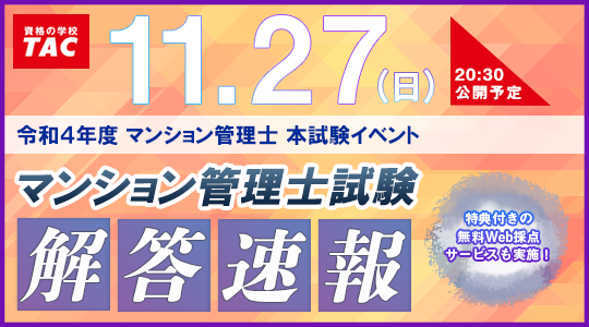 【TACマンション管理士 解答速報!】令和4年度 マンション管理士試験 解答速報を11/27(日)試験当日に公開!