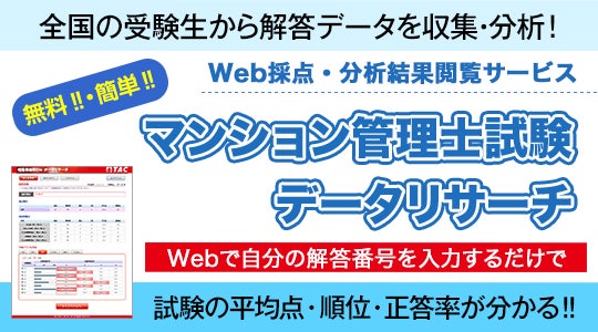 ※解答速報および解答解説会の解説、データリサーチの分析は、TAC(株)が独自の見解に基づき、サービスとして情報を提供するもので、試験機関による本試験の結果等(合格基準点・合否)について保証するものではございません。