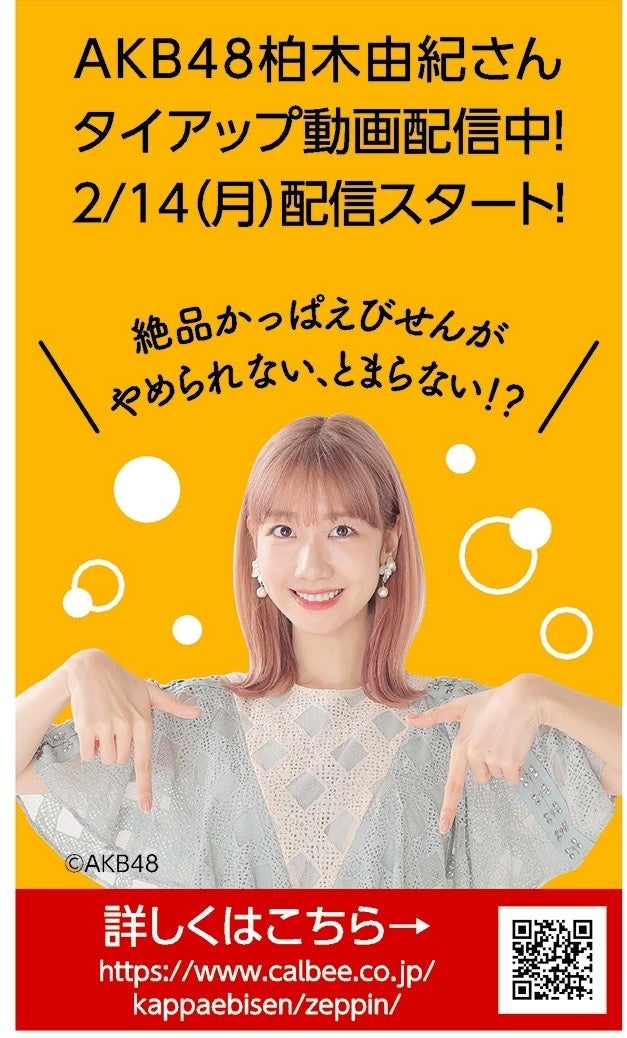 発売を記念して、ターゲット層を中心に幅広い人気を誇るAKB48の柏木由紀さんを起用したタイアップ動画を2022年2月14日(月)19:00頃より、「絶品かっぱえびせん」ブランドサイトにて公開します。ぜひ、ご覧ください。
