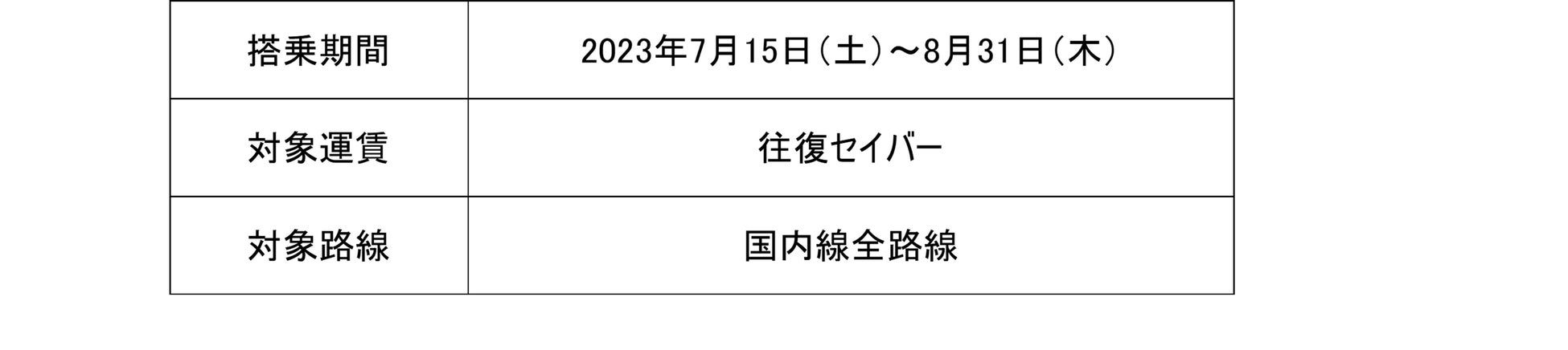 ◆6月29日~7月5日の期間中、国内線往復セイバーご購入時の小児割引率が50%(通常25%) 引きになります。